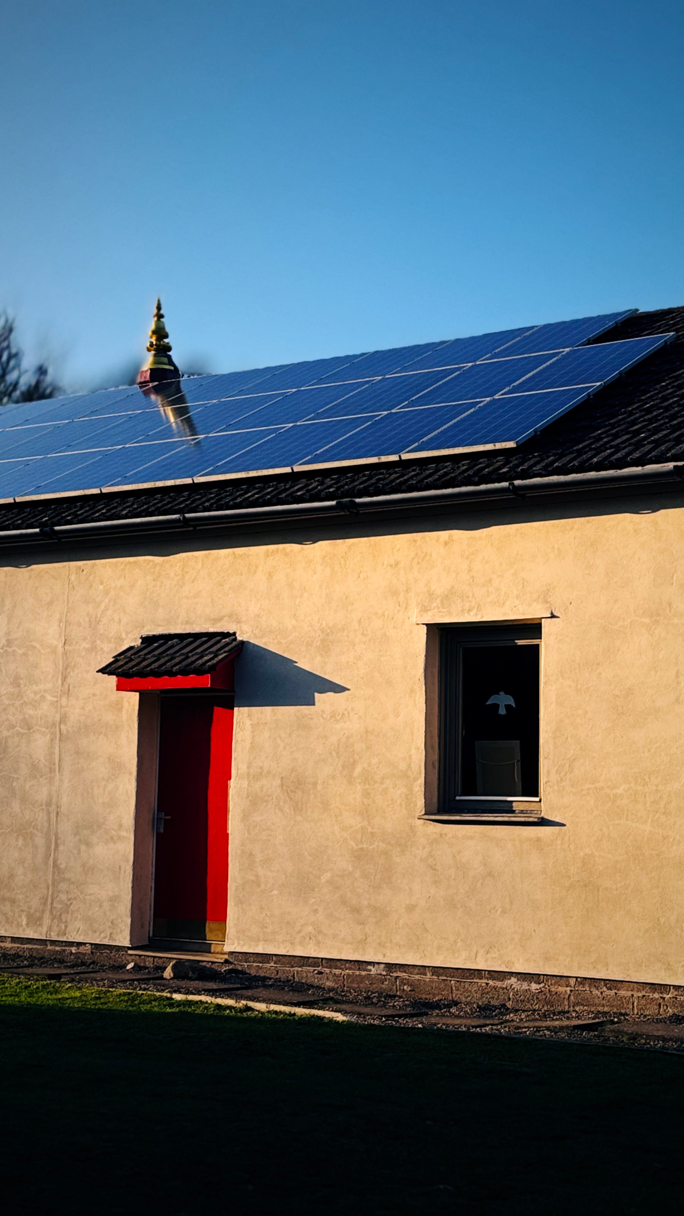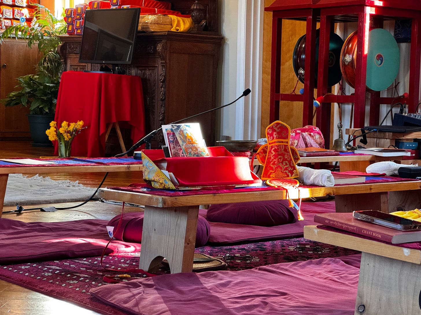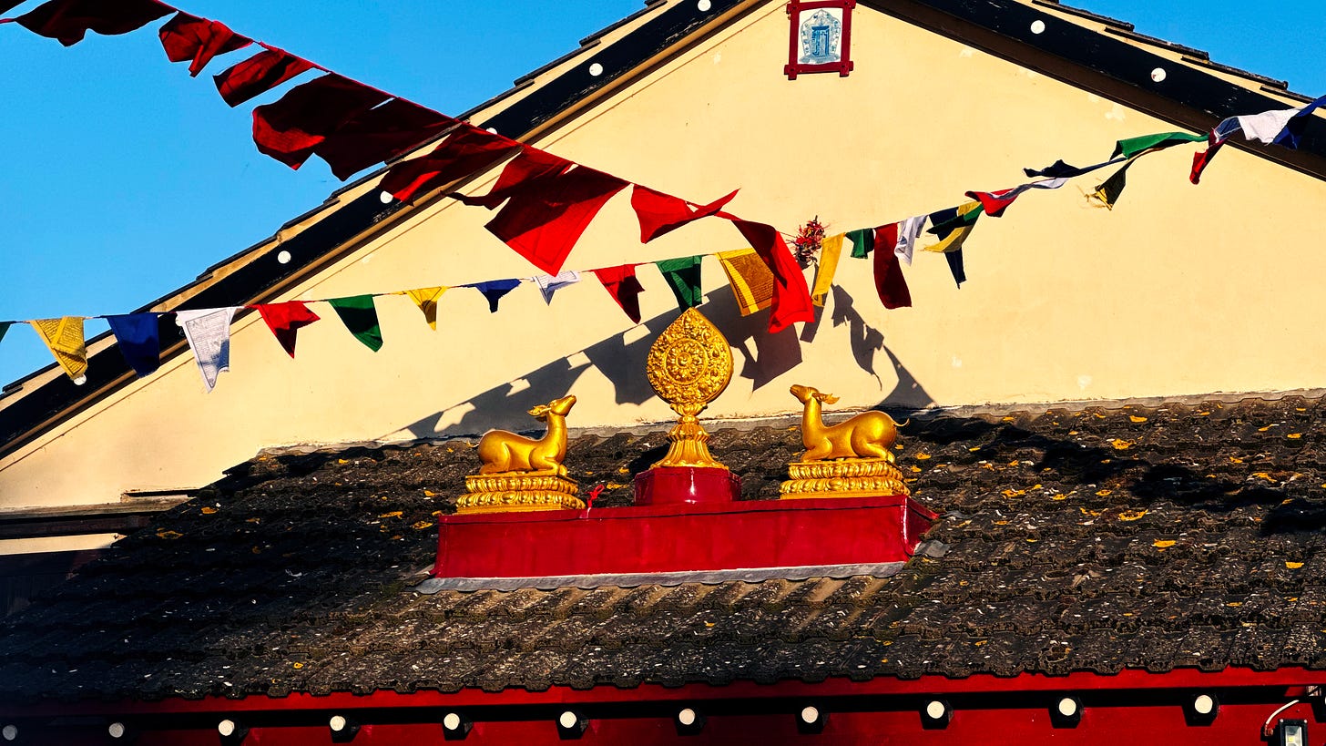 Outside, prayer flags shift softly in the wind. Somewhere across the land a bell rings. Incense drifts through the meditation hall. Someone downstairs is boiling water for tea.