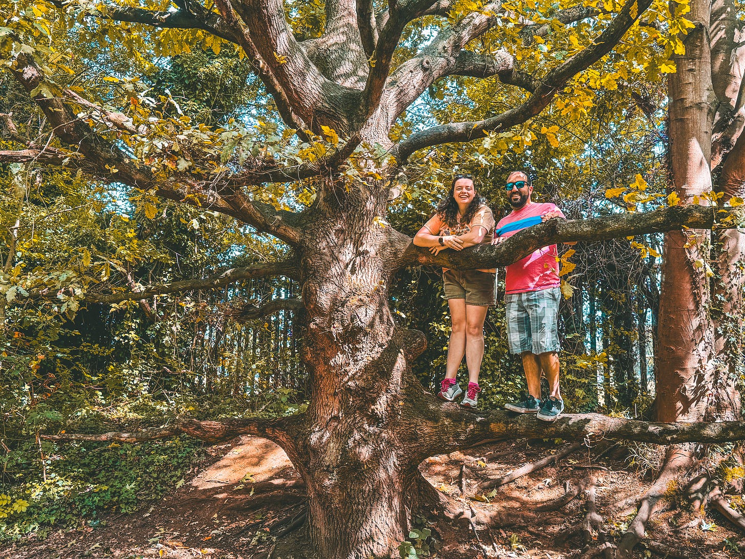 Today’s photo is Colleen & Jeff tapping into pure joy & climbing the best looking tree ever!