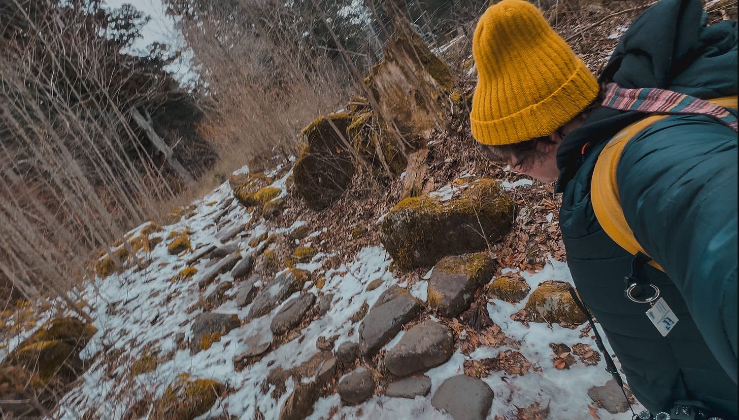 And yet here I was. In snow. On ancient steps. Among cedar trees older than nations.